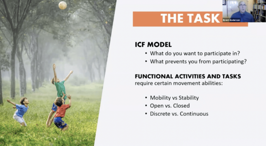 In the International Classification of Function Model “ICF”, we ask them “What do you want to participate in”? If they wish to participate in golf at 90 years old, I have to be thinking “what does this individual’s body require to be able to play golf at 90 years old?